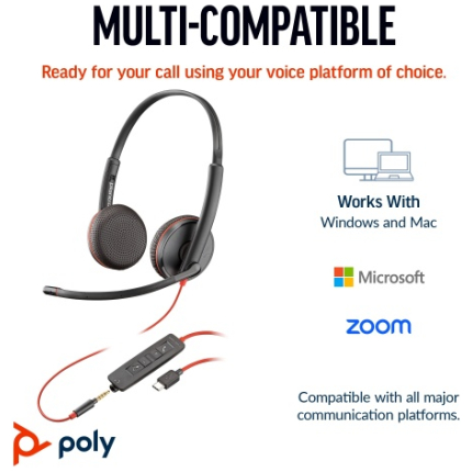 POLY Blackwire 3225 Stereo Wired Headset USB-C, 3.5mm jack, +USB-C/A Adapter (Bulk)