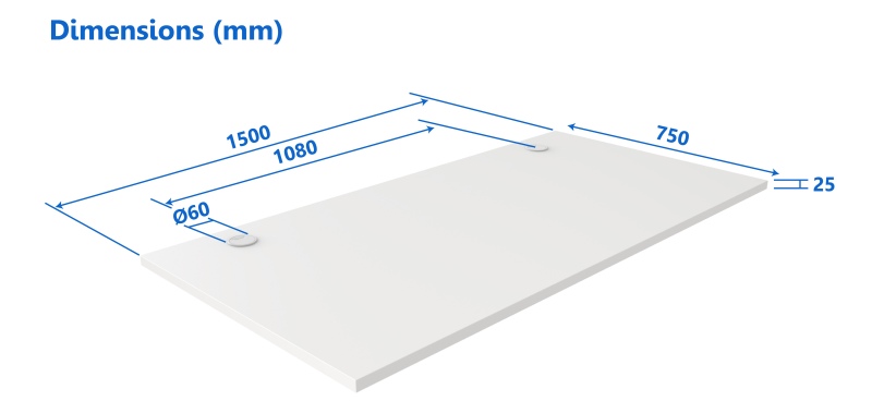 1500 x 750 x 25 mm |