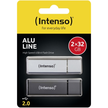 Intenso Alu Line. Capacity: 32 GB, Device interface: USB Type-A, USB version: 2.0, Read speed: 28 MB/s, Write speed: 6.5 MB/s. Form factor: Cap. Weight: 8 g. Product colour: Silver |