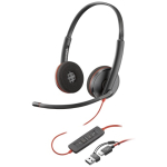 Poly Blackwire 3220 Stereo Wired Headset, USB-C, USB-C/A Adapter (Bulk), Black