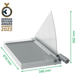 The Leitz Precision Home Office A3 Paper Cutter is perfect for home and office use to cut through paper, labels, film, photos, laminates and card. This strong and lightweight home paper cutter will effortlessly cut up to 10 sheets of A3 paper (80gsm) with speed and precision. Features unique EdgeGlow light technology which illuminates the cutting edge for greater visibility and maximum precision. The clear, manual paper clamp keeps the paper secure, while the ergonomic handle ensures comfortable and easy cutting. It is quick and easy to align the paper with the simple metric grid lines, angle guides and measuring rules on the smooth, laminated work surface. The secure blade safety guard gives total protection and the safety latch keeps the blade locked closed while not in use. With a high quality stainless steel blade, sturdy work surface and an extended 3 year guarantee, you have peace of mind that this guillotine paper cutter will provide accurate cutting for many years.