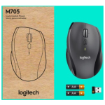 Logitech Marathon M705 Wireless Mouse, RF Wireless, 1000 DPI, Black/Grey