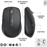 Logitech MX Anywhere 3S for Business Wireless Mouse, RF Wireless + Bluetooth, 8000 DPI, Graphite