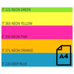 Color Neon paper Double A, 75g, A4, 500 sheets, Rainbow 4, 5 Neon Colors (Neon Green, Neon Yellow, Neon Pink, Neon Orange, Deep Blue)