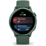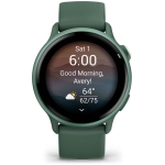 vívoactive 6 | Screen 1.2″ | Display technology AMOLED | Resolution 390 x 390 | Wireless connections WLAN/Bluetooth | Memory 8 GB | GPS | Colour Green | Dimensions 42.2 x 42.2 x 10.9 mm | Weight 0.026 kg