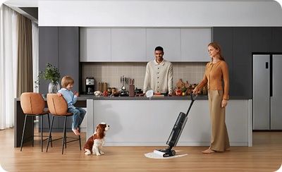 An advanced brush that self-cleans with 60°C hot water. Simply put the vacuum back into the smart charging base for a “hot bath” after use. Gone are the days of soiled hands from having to scrape mess off the brush or mop yourself.